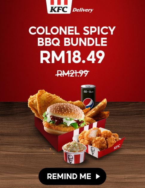 ▼Colonel Spicy BBQ Bundle 只需RM18.49,购买链接:【点击这里】
