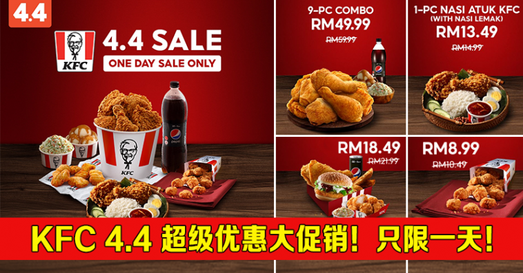 4月份开始不久,KFC 就带给大家一项好消息啦!那就是4.4超级大优惠!