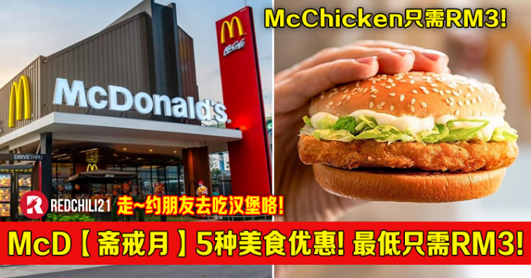 为了配合斋戒月的到来,大马麦当劳推出斋戒月特别优惠!McChicken 汉堡只需RM3!