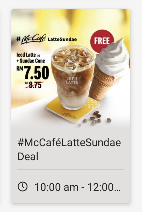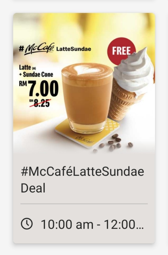 另外,McCafe也推出特别优惠!购买Latte 可免费获得Sundae 雪糕哦!