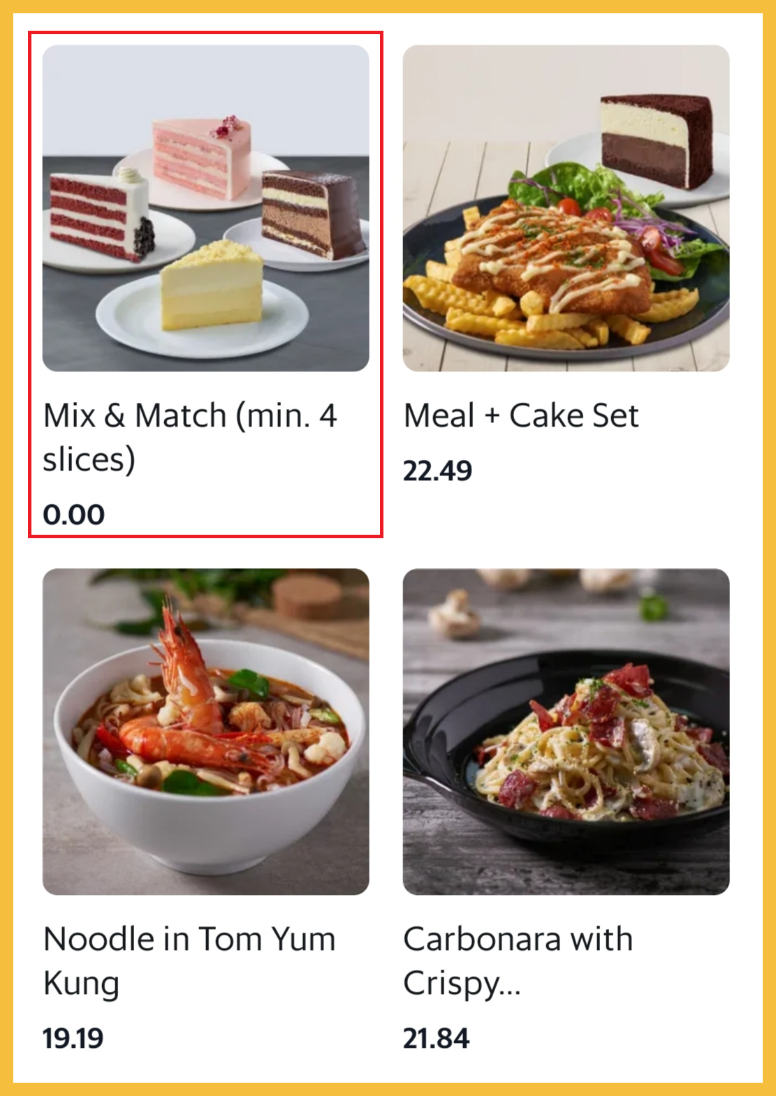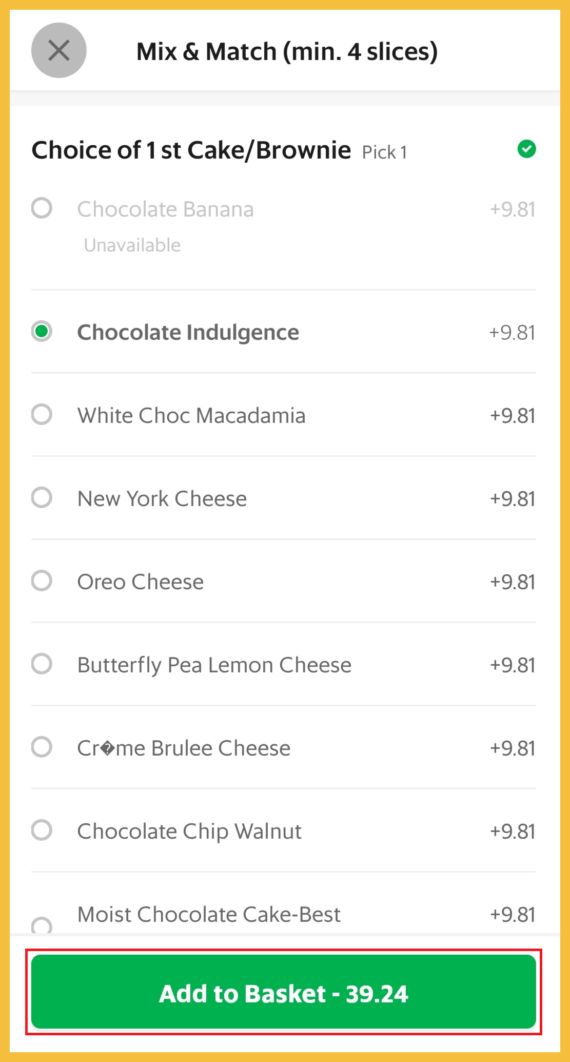 步骤2:选择你想吃的食物或套餐,例如:小编选择Mix & Match (4块切片蛋糕)