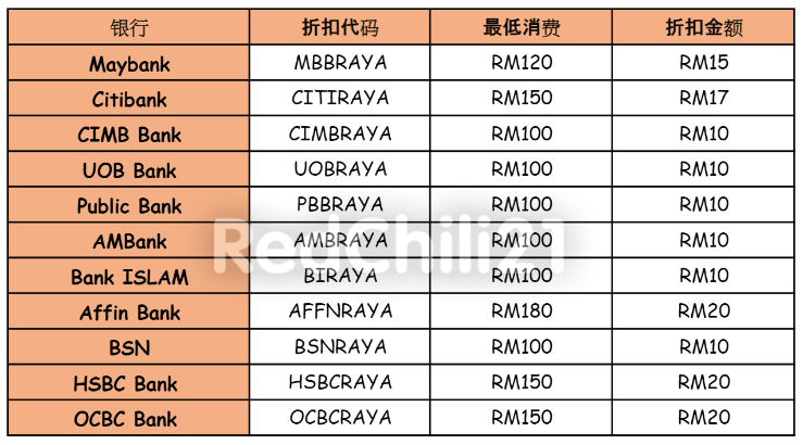 3)CIMB Bank —— 消费RM100,可折扣RM10