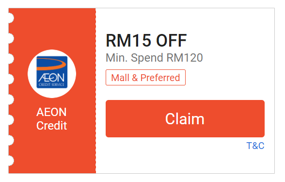 4)Aeon Credit —— 消费RM120,可折扣RM15【点击这里】