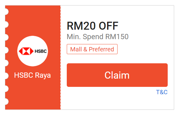 5)HSBC Raya —— 消费RM150,可折扣RM20【点击这里】