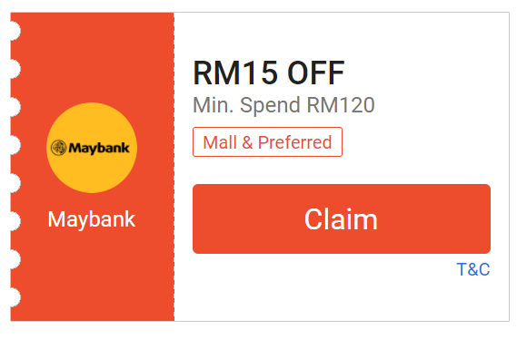 ▼ 1)Maybank —— 消费RM120,可折扣RM15【点击这里】
