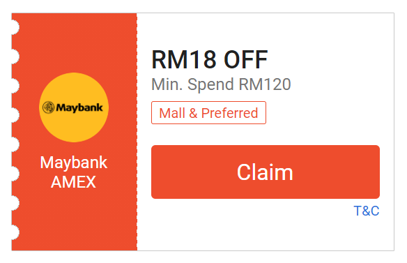 2)Maybank AMEX —— 消费RM120,可折扣RM18【点击这里】