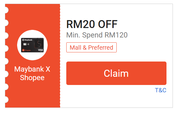 3)Maybank X Shopee —— 消费RM120,可折扣RM20【点击这里】