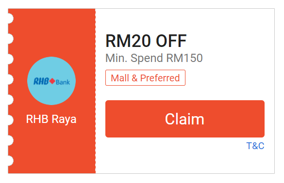 6)RHB Raya —— 消费RM150,可折扣RM20【点击这里】
