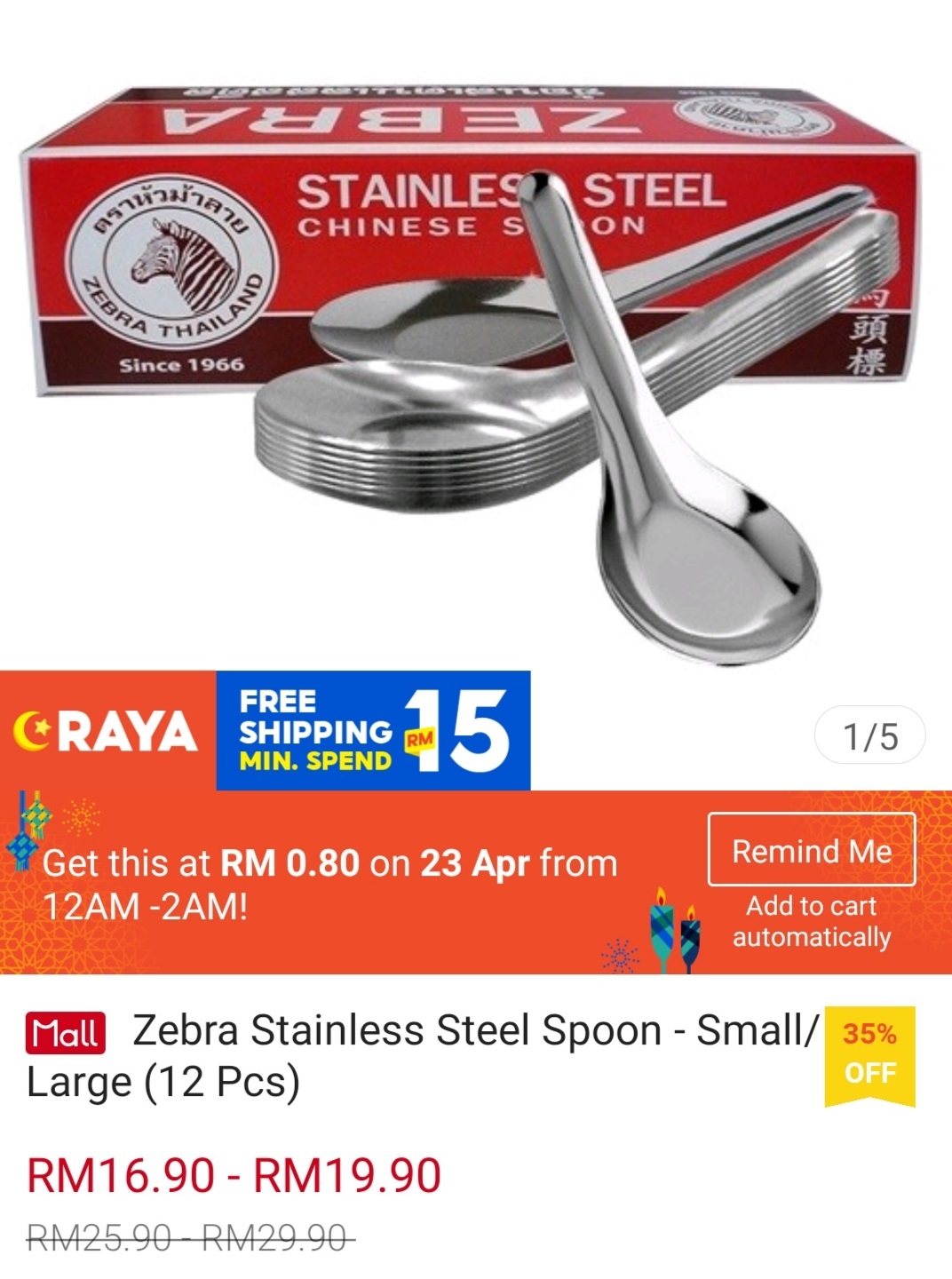 ▪ Zebra Stainless Steel Spoon – Small/Large (12 Pcs) – RM25.90 – RM29.90 RM0.80
