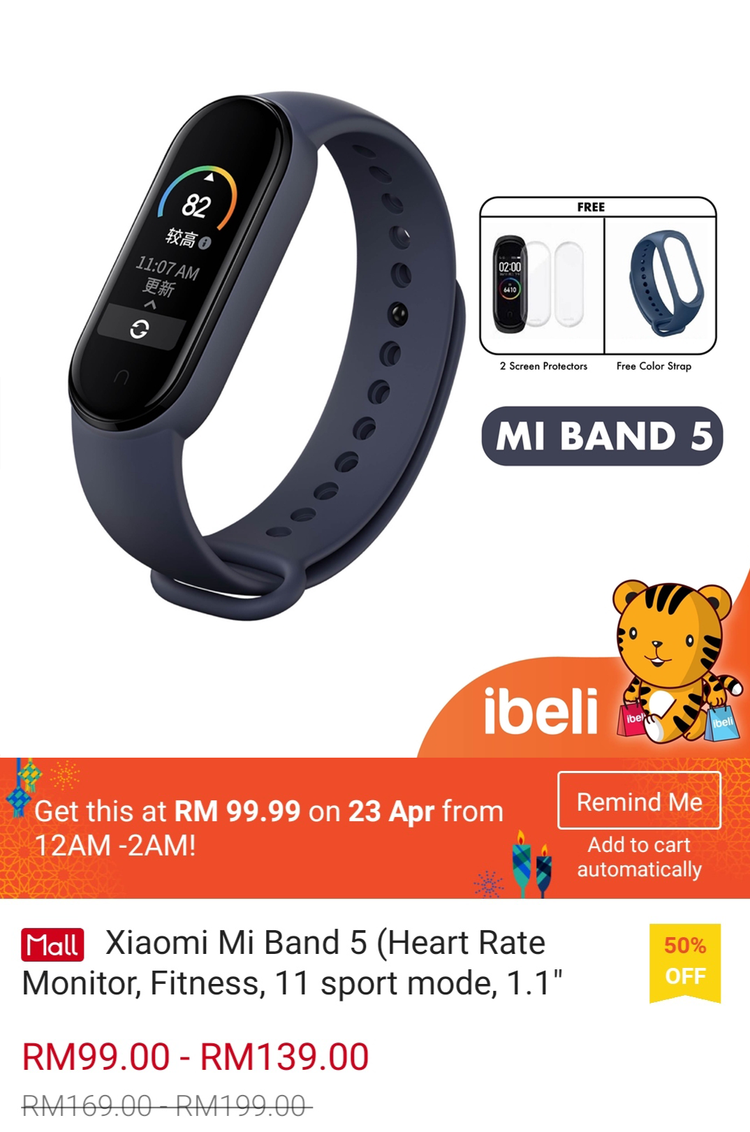 ▪ Xiaomi Mi Band 5 (Heart Rate Monitor, Fitness, 11 sport mode, 1.1″ AMOLED Display) – RM169.00 – RM199.00 RM99