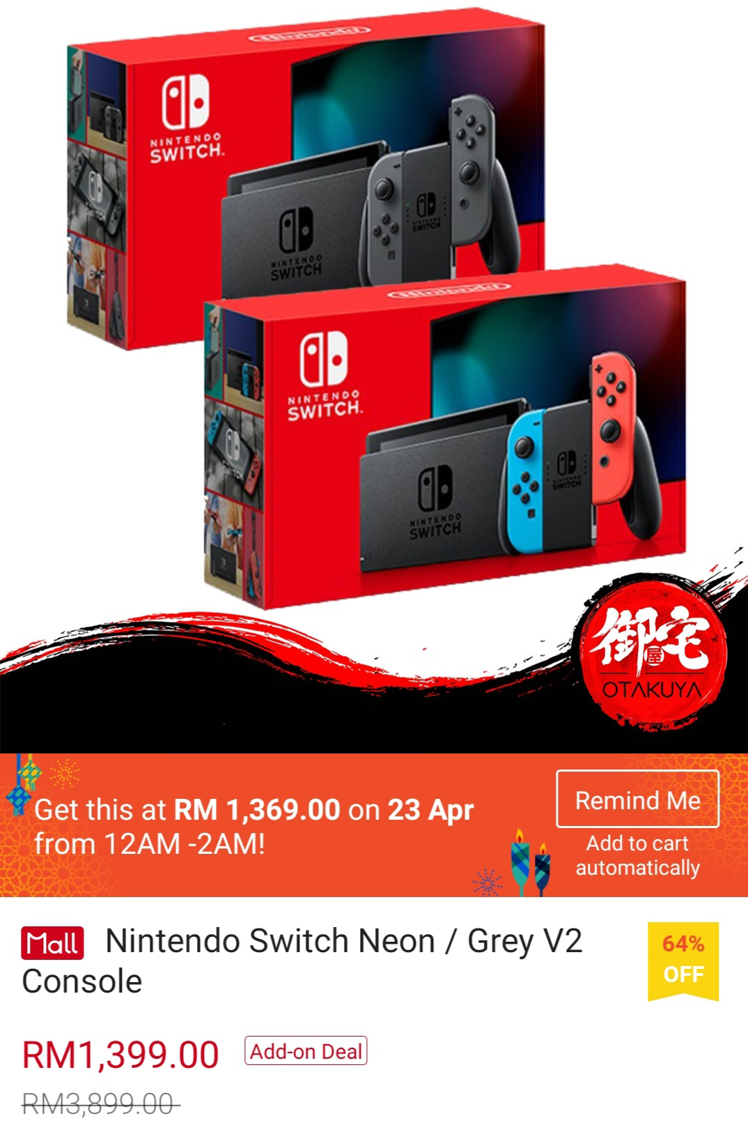 ▪ Nintendo Switch Neon / Grey V2 Console – RM3899 RM1369