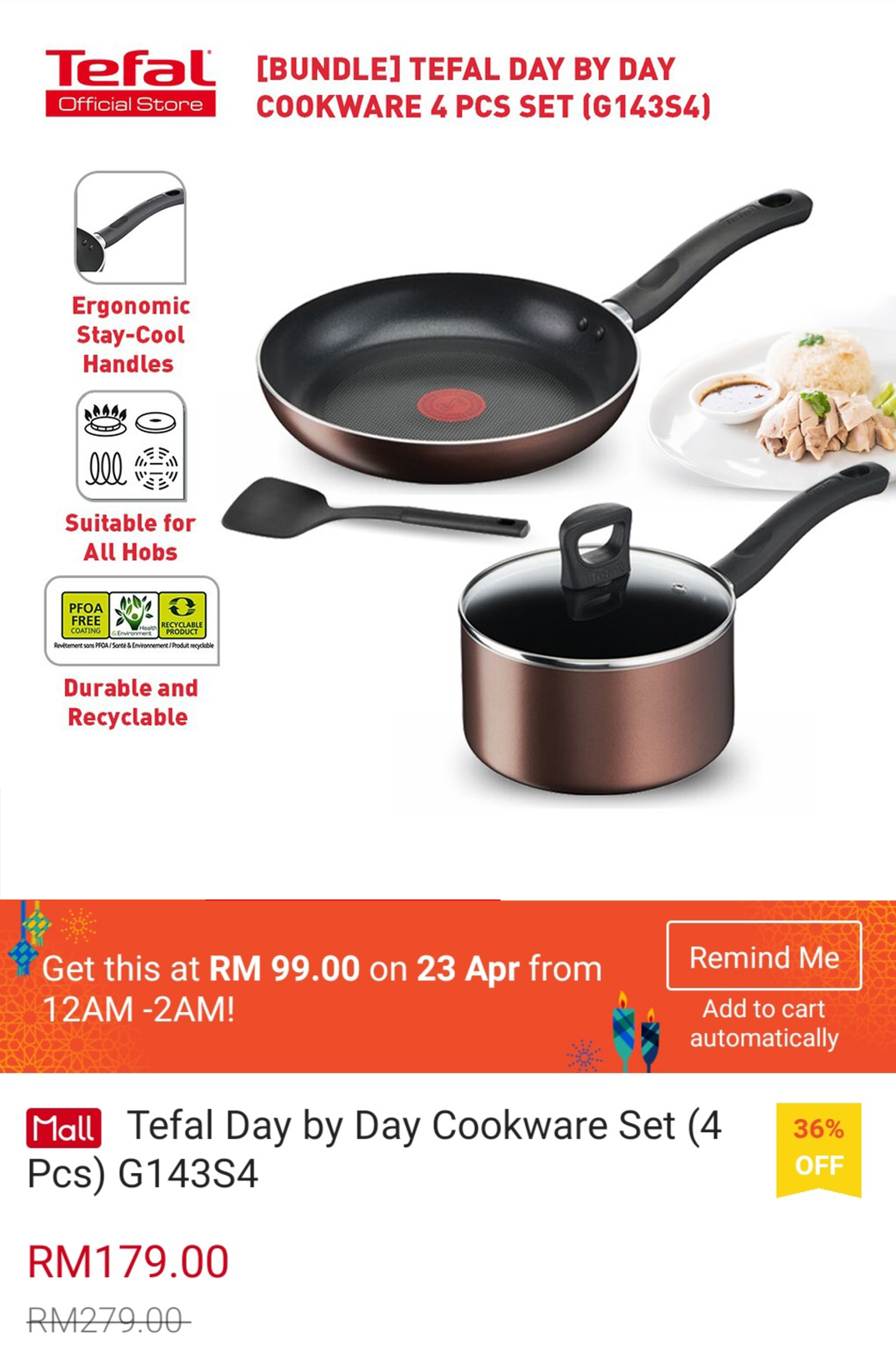 ▪ Tefal Day by Day Cookware Set (4 Pcs) G143S4 – RM279 RM99