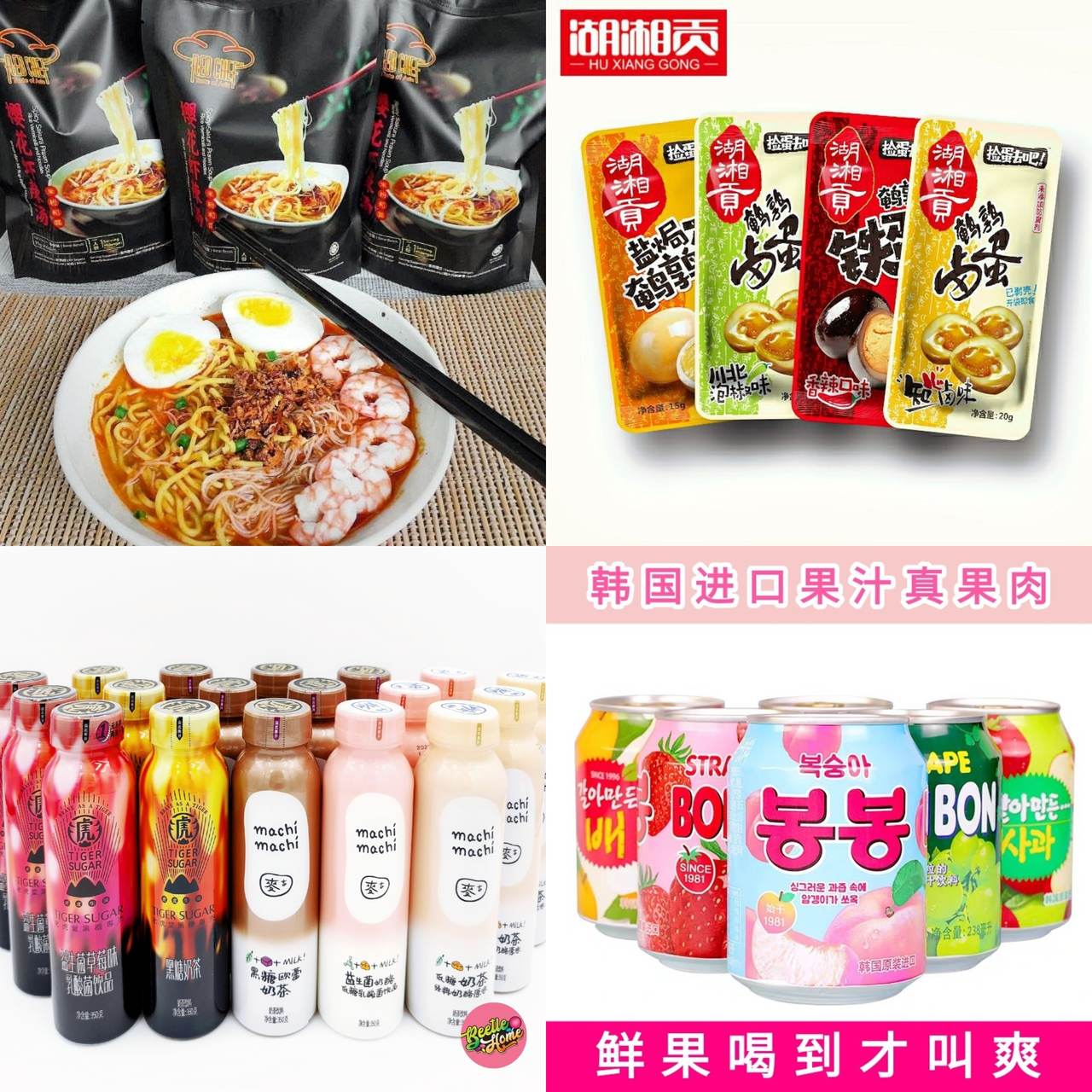 这家零食店铺主打中国零食,如:湖湘贡鹌鹑蛋、【甘源】各种豆类、渔米之湘脆皮鱼卷、Machi Machi 奶茶、樱花虾辣汤面等!以及一些中国爆红的快速面类!