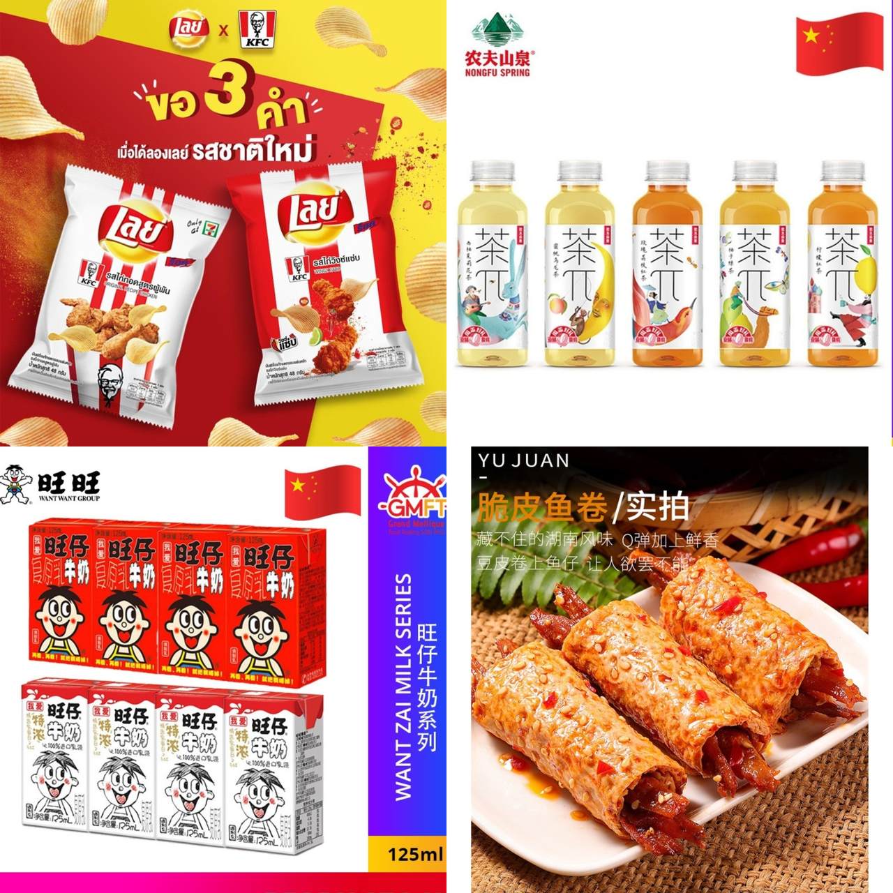 - 售卖零食:日本,韩国,台湾,泰国,中国