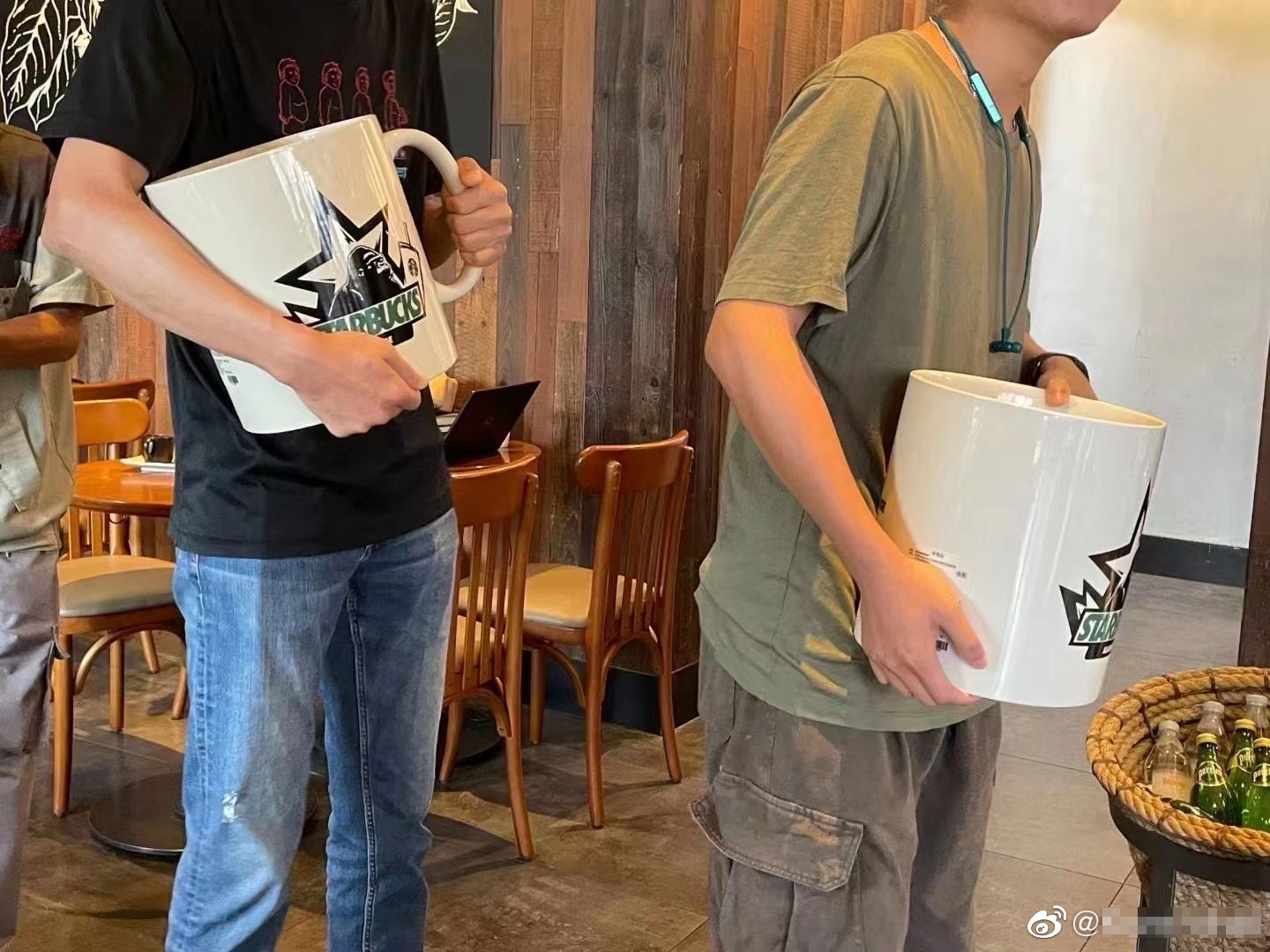 ▼ 用水桶装星巴克咖啡!
