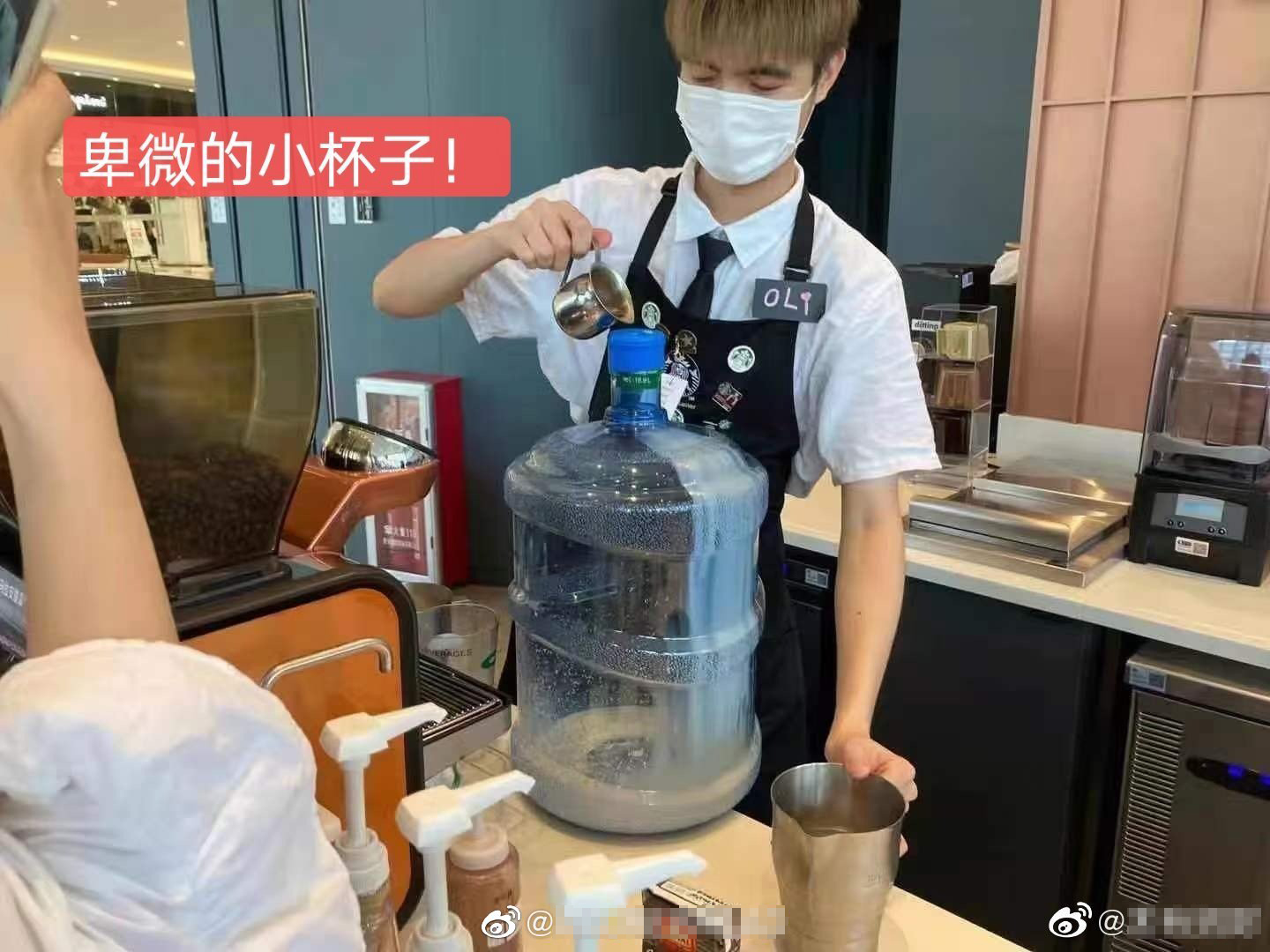 ▼ 这想必是星巴克小哥哥人生中第一次装过最大的“杯”!