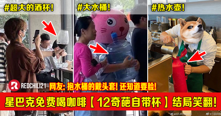 Starbucks自带杯免费喝咖啡!【12种奇葩水杯】结局笑翻网民!评论区:抱水桶的戴头套!还知道要脸!
