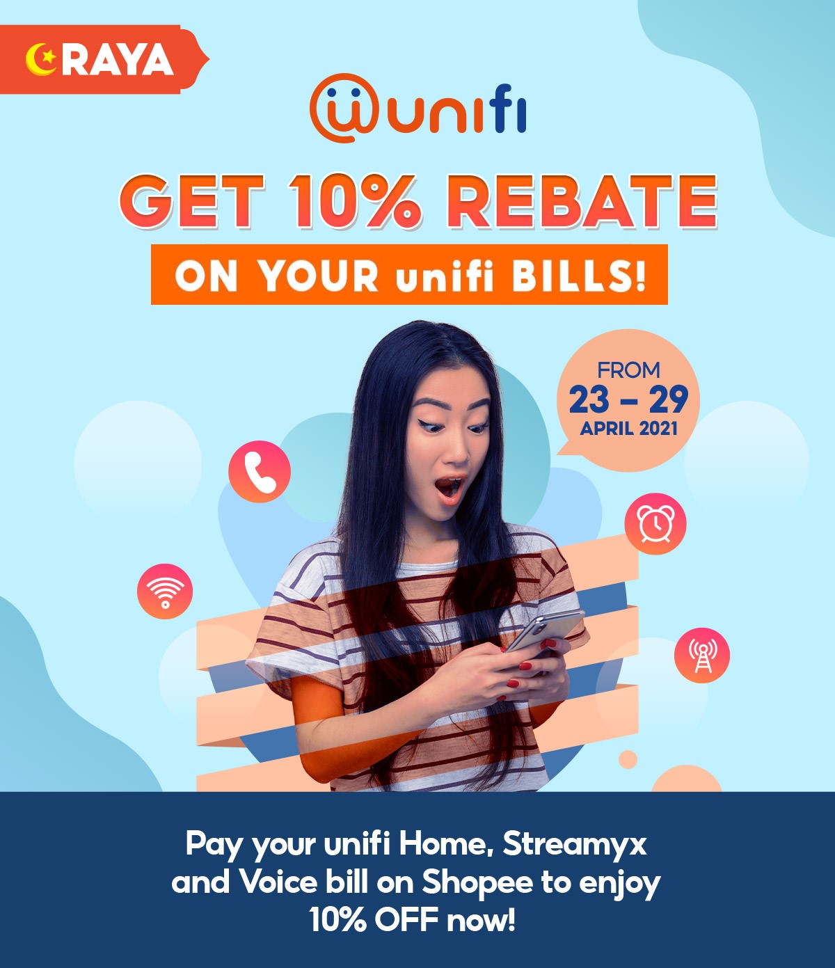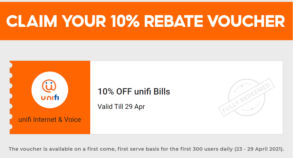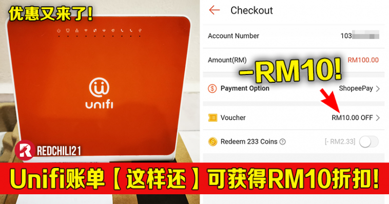 从即日起至4月29日,只要你通过Shopee 缴付Unifi 账单可享有10%折扣(高达RM10折扣)!