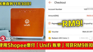 从即日起至4月29日,只要你通过Shopee 缴付Unifi 账单可享有10%折扣(高达RM10折扣)!