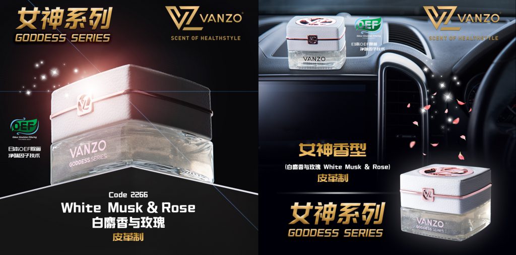 ▼同样的女神系列【白麝香与玫瑰White Musk & Rose】也采用日本独家OEF 除菌净味因子技术,是市场上唯一拥有除菌功能的健康汽车香氛!