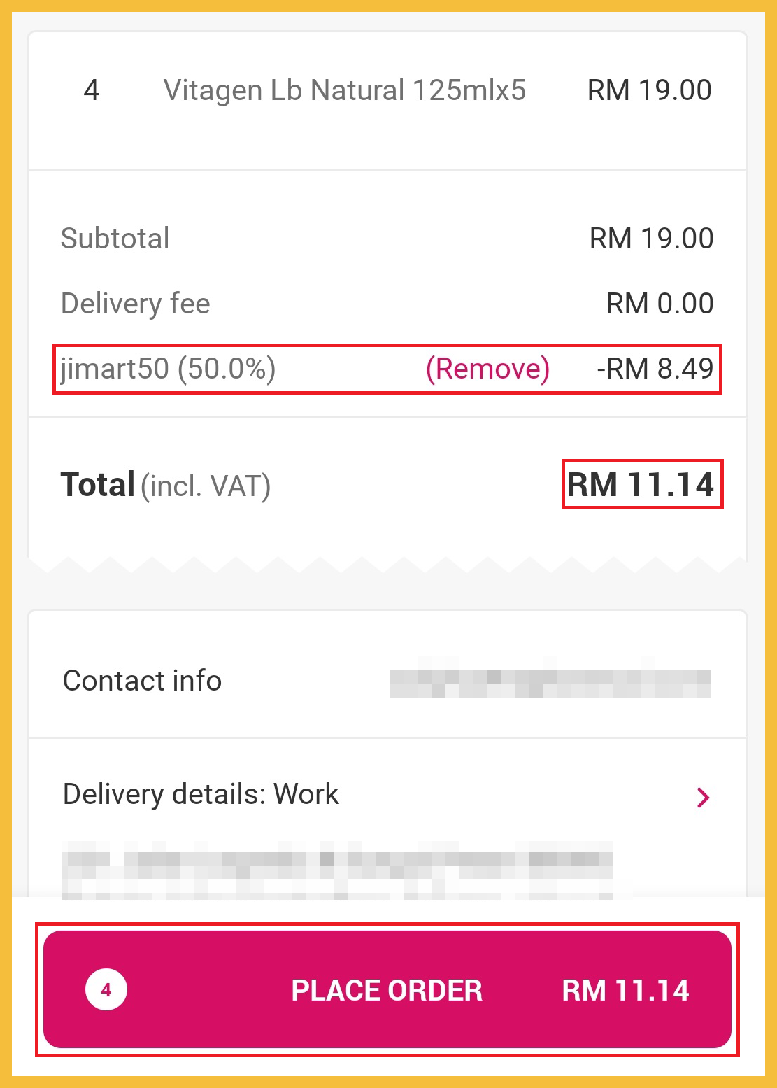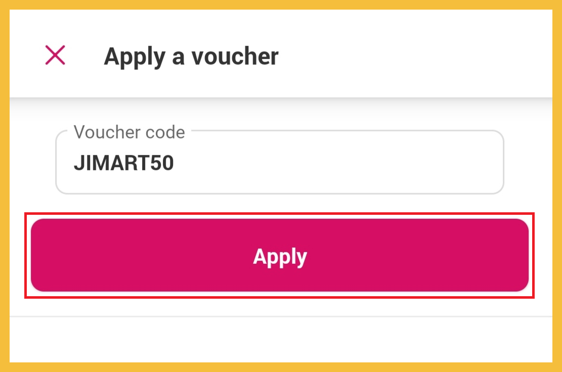 步骤 6:输入 【JIMART50】这个优惠码可获得RM9折扣