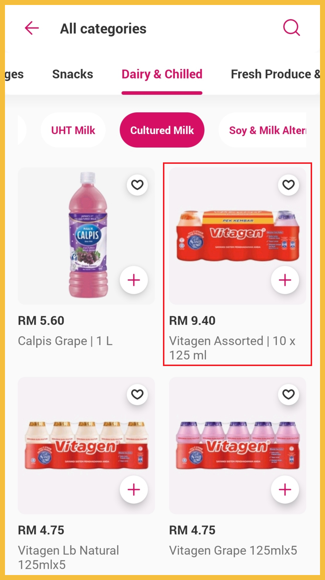 步骤 2:如果你要购买Vitagen,可点击「Dairy & Chilled」!