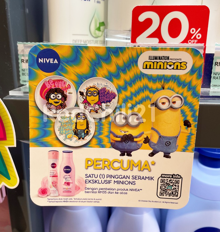 只要你在Watsons 购买RM35 或以上Nivea 产品就可免费获得一个Minions 陶瓷盘!