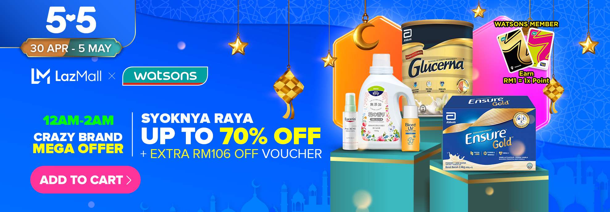此外,小编还发现到Lazada Watsons 官网即日起至5月5日推出大促销!折扣高达70%,还可额外获得高达RM106折扣【点击这里】!