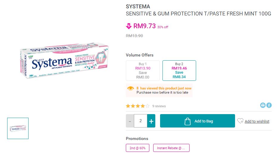 ▼ Promotion 9:第二样60%(2盒RM17.49;平均价格介于RM8.75)