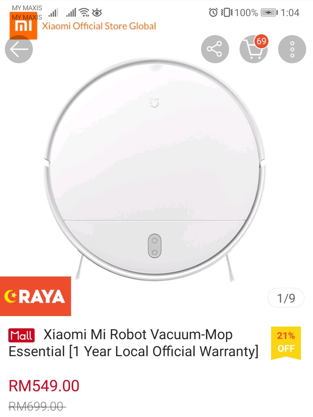 ▪ Xiaomi Mi Robot Vacuum-Mop Essential – RM699 RM549
