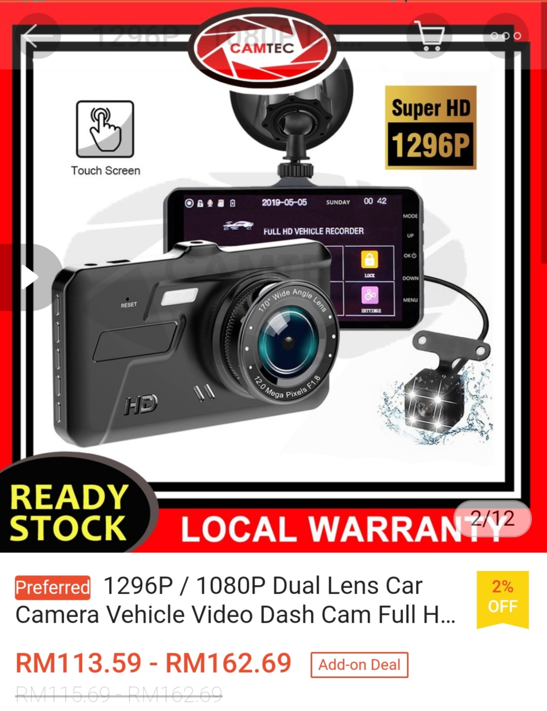 ▼⑦ 1296P / 1080P Dual Lens Car Camera Vehicle Video Dash Cam Full HD – RM115.69 – RM162.69 RM113.59 – RM162.69