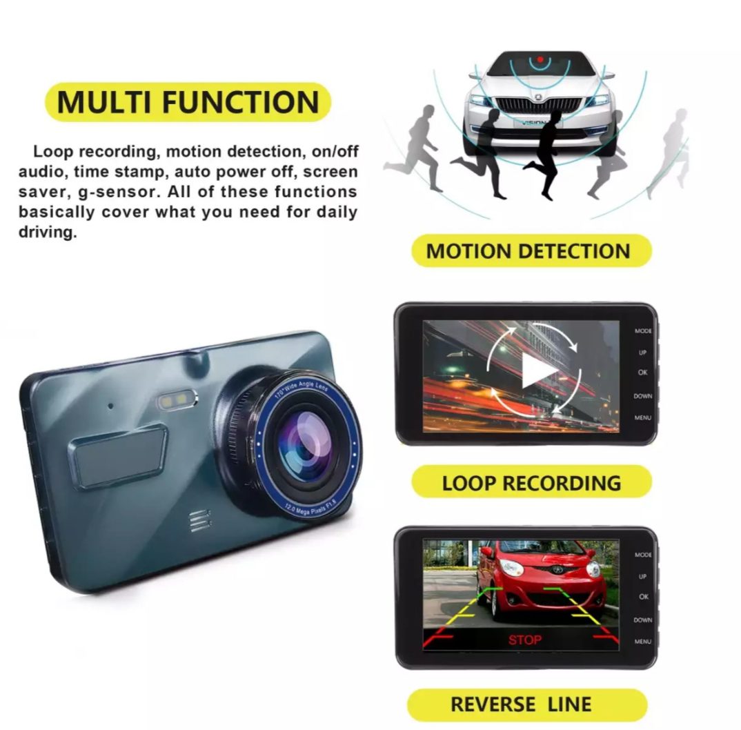 - 双镜头行车记录仪录像机,前后摄像头同时记录