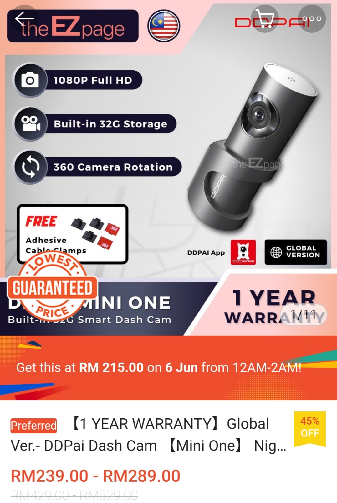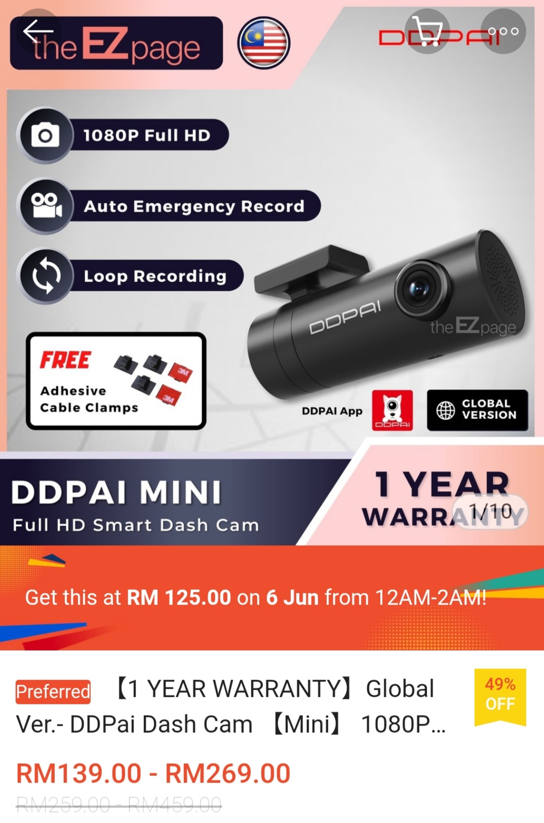 ▼④ Global Ver.- DDPai Dash Cam 【Mini】 – RM259 – RM459 RM125(6月6日优惠价)