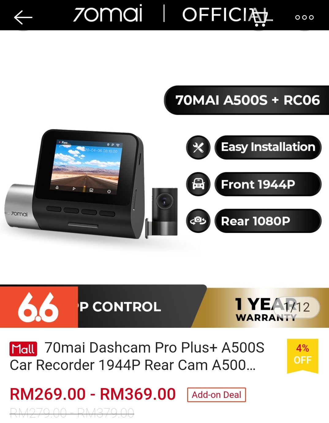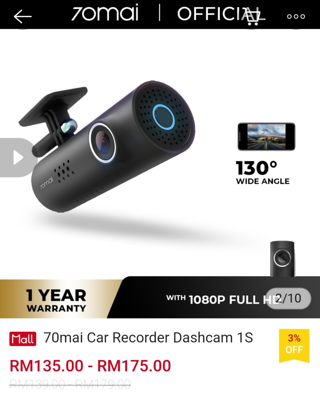▼③ 70mai Car Recorder Dashcam 1S – RM139.00 – RM179.00 RM135.00 – RM175.00