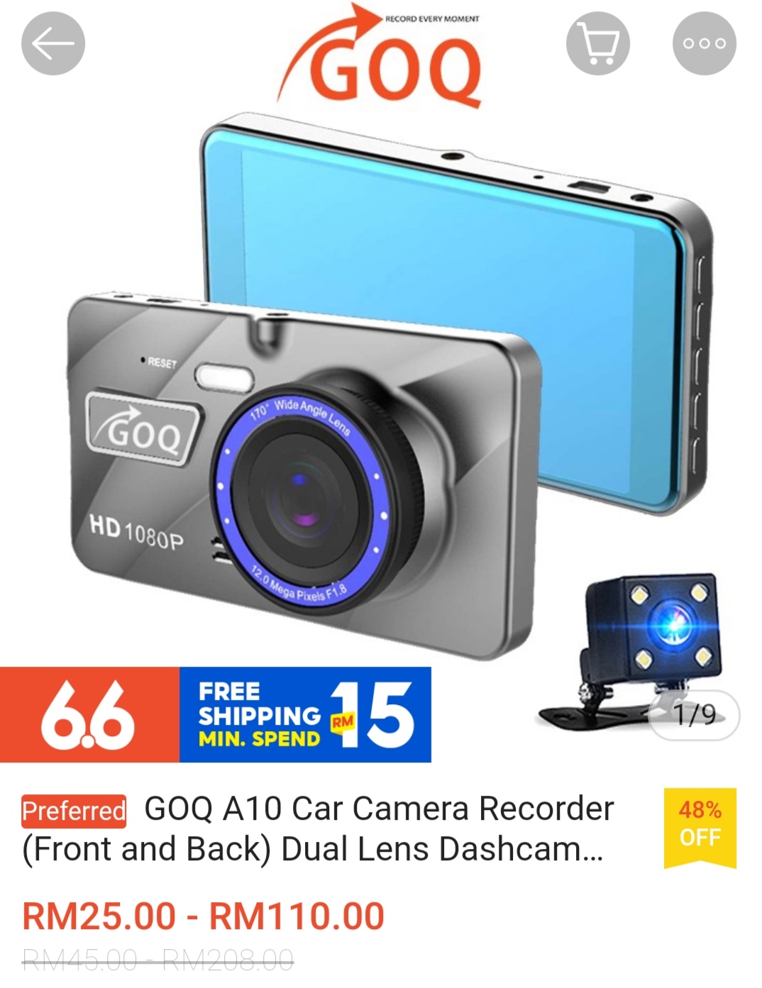 ▼⑧ GOQ A10 Car Camera Recorder – RM45 – RM208 RM25 – RM110
