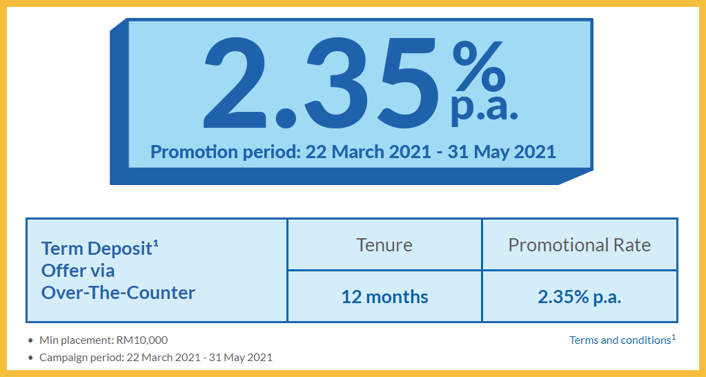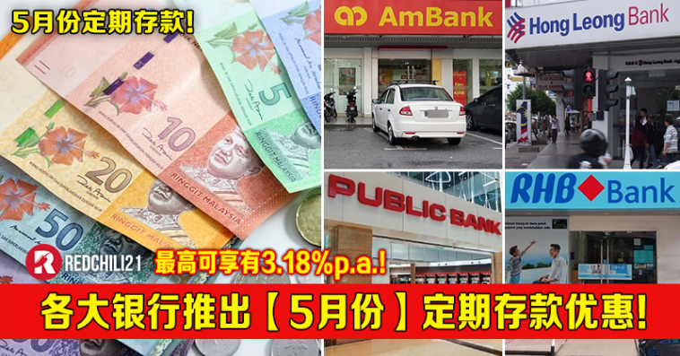 大马银行在这5月份推出最顶定期存款(Fixed Deposit)促销优惠,最高可享有3.18%p.a.!