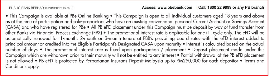 - 仅适用于常规的往来帐户和储蓄帐户(CASA /CASA-i))持有人