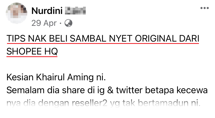 想要抢购 Khairul Aming 的网红 Sambal Nyet 但一直买不到?!网友教你怎么做就能成功下单!