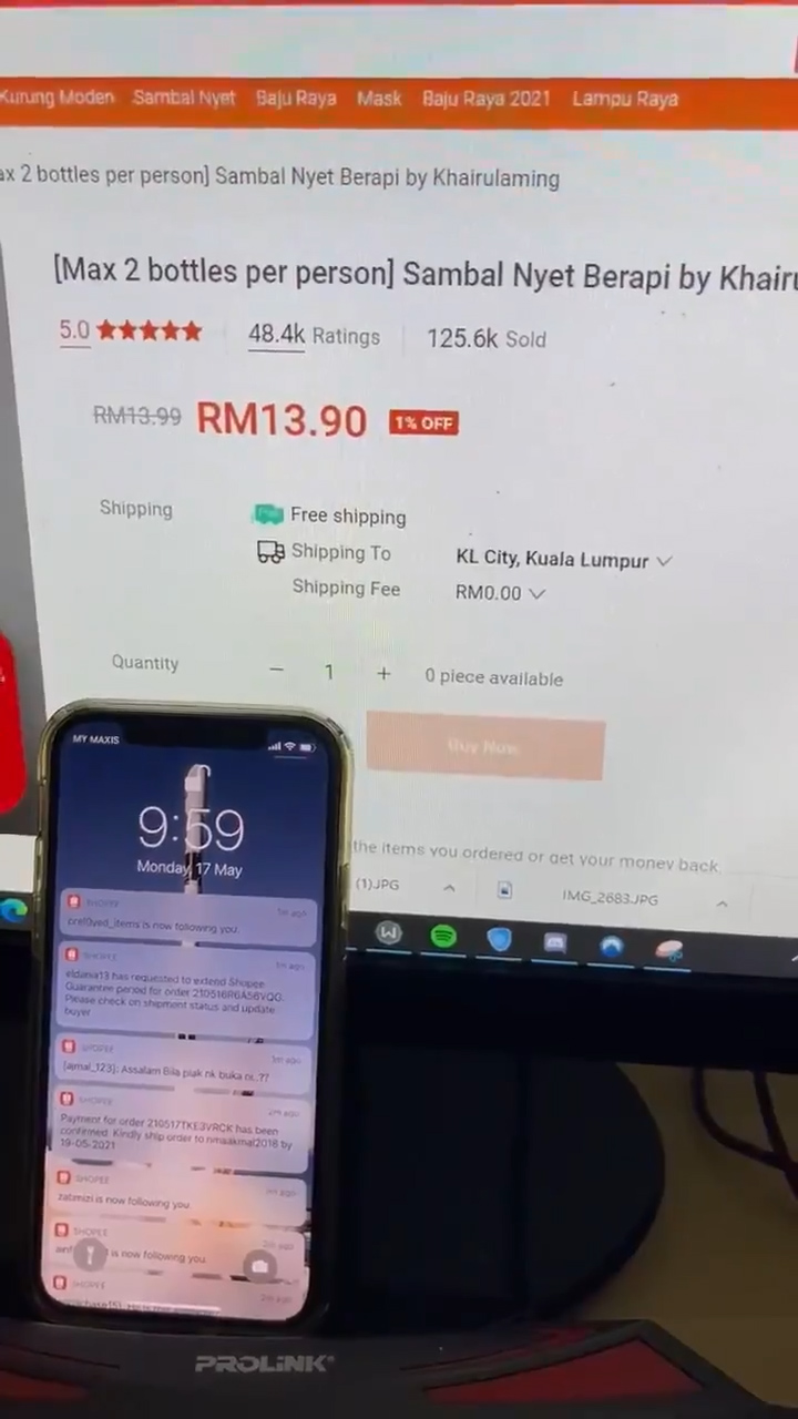 是的,Khairul Aming 的 Sambal Nyet 经常卖到断货,30秒内500罐就卖光了!很疯狂吧?所以我就要和大家分享贴士,如何在 Khairul Aming 的 Shopee 网店 抢购到这个 Sambal Nyet。