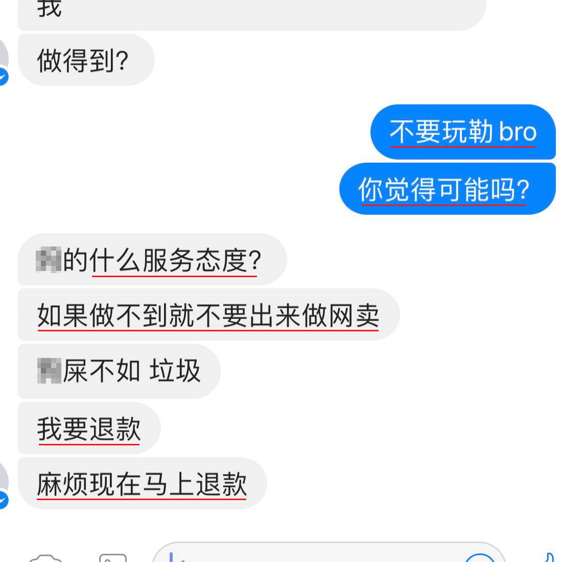 ▼ 卖家看到这无理的要求,诚实地回复:「你觉得可能吗?」结果顾客就开始大发雷霆,指责卖家的服务态度甚至还飙脏话,然后要求马上退款。