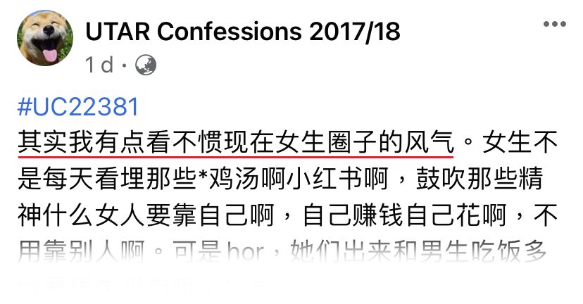 该名大马男生通过“UTAR Confessions”投稿发文,diss女生们很虚伪,Beh Tahan这种圈子的风气,结果引发网友们的争议。