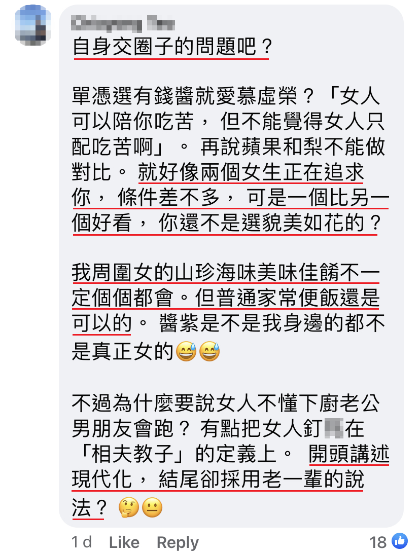 不过近日有一名大马男生就PO文吐槽,女生虽然是这么说,但做的又是另一套!