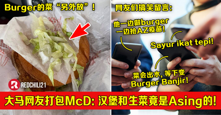 近日一名大马网友就在群组分享,他的汉堡竟然是“Burger Sayur Asing”的!