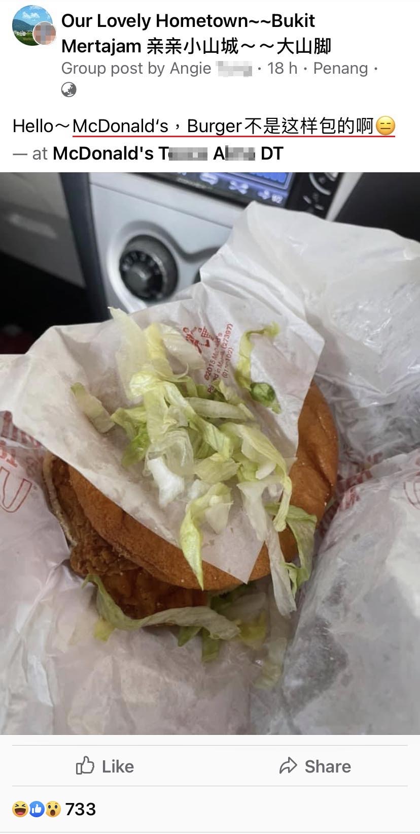 很多人在买快餐的时候都有遇过一些”小事故“,比如少给什么东西或是汉堡少放什么食材,但生菜“另外放”的你见过吗?