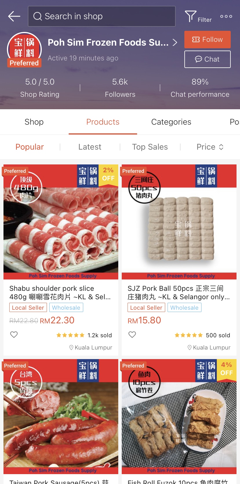 ① Poh Sim Frozen Foods Supply – Shopee 网店【点击这里】