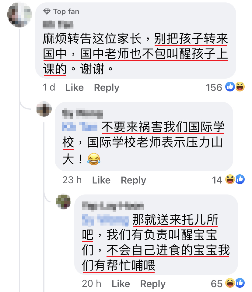 其他家长提醒:「好像老师没有包叫孩子起床的哦!」
