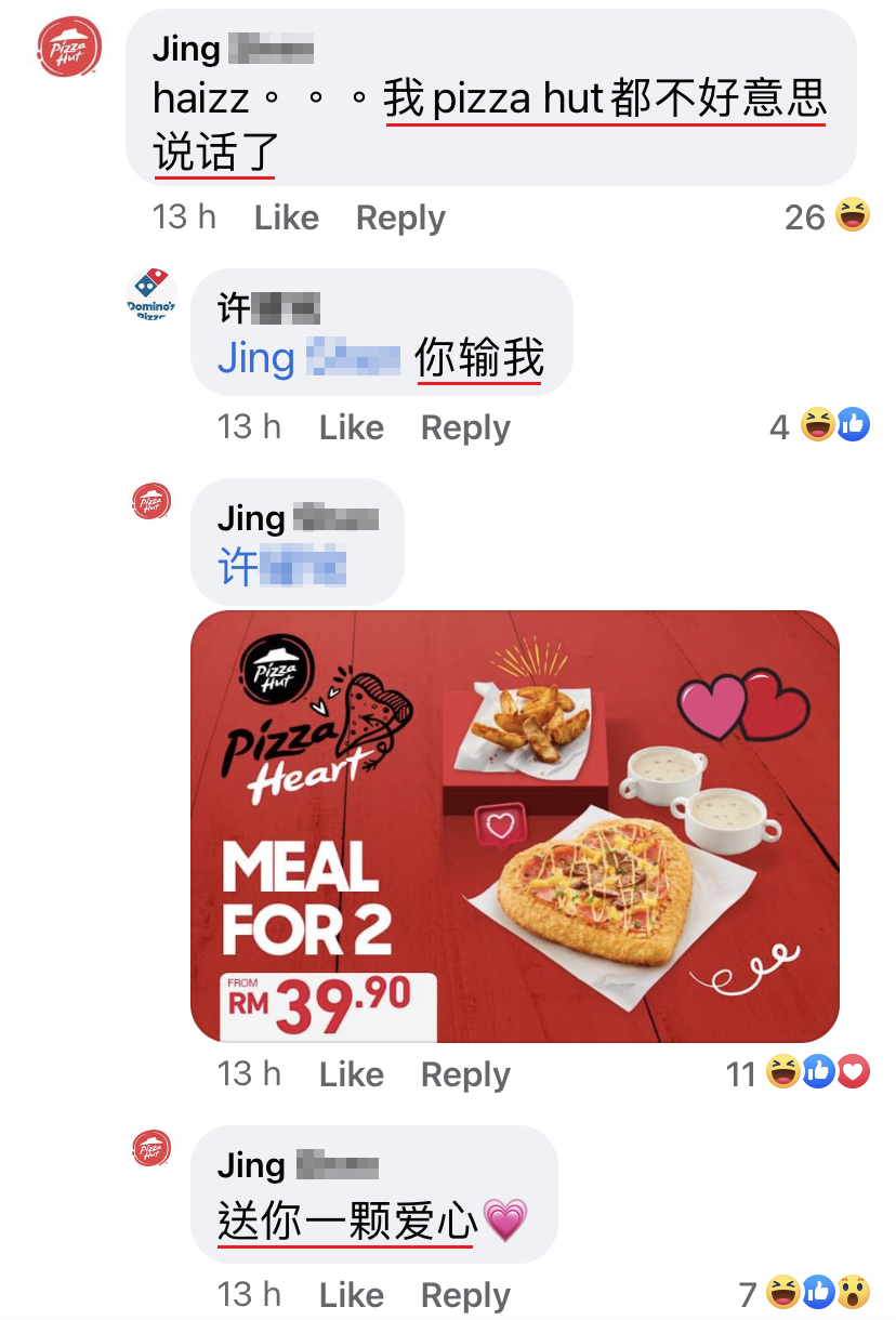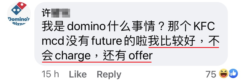 ▼ 接着,“KFC” 和 “McD” 双双都cue “Domino’s Pizza” 出来!