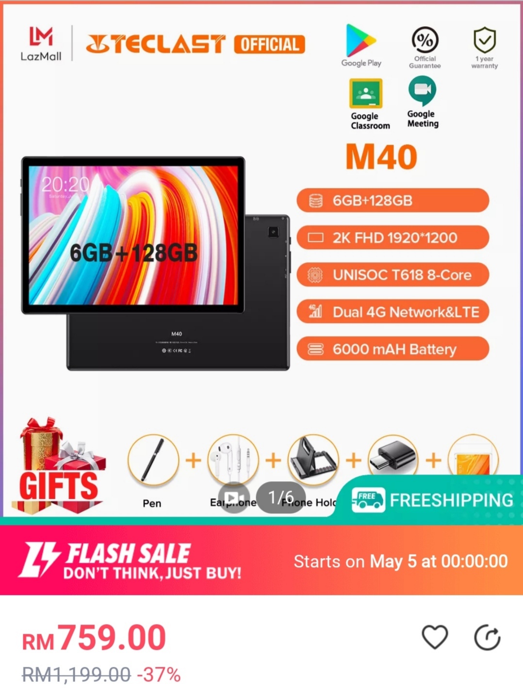 ▪ Teclast Original M30 Pro 4G Phablet 10.1 Inch Tablets Android 10.0 4GB/6GB RAM 128GB ROM – RM1199 RM759【点击这里】