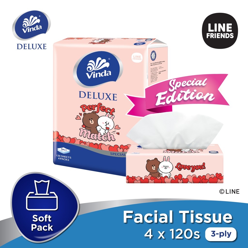 ③ Vinda Deluxe Facial Tissue Large 3ply Special Edition LINE FRIENDS (4x120s) – 售价RM11.70