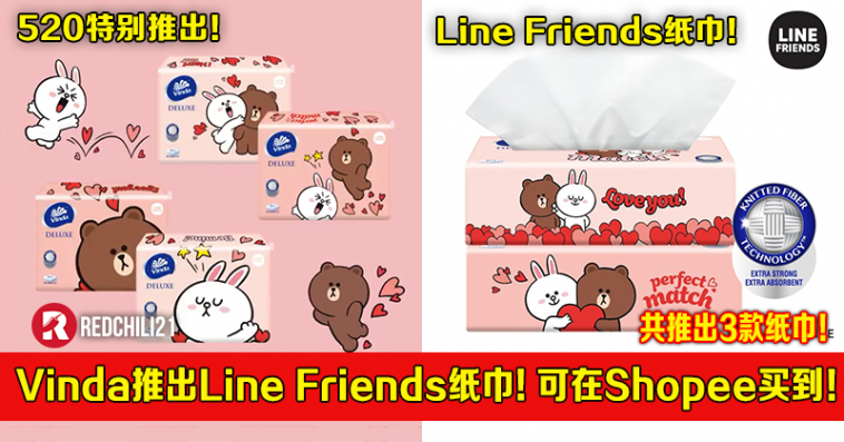为了配合520这节日,大马Vinda 公司就在今日推出这款限量版Vinda Line Friends 联名纸巾!并在大马网购平台Shopee 正式出售!